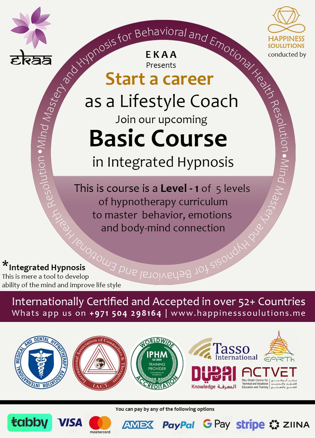 I, by submitting the subscribe button and checking the terms and conditions on website, hereby explicitly grant permission to Happiness Solutions ME LLC-FZ and EKAA Technical Skills Training LLC to store my contact information and use it for the purpose of sending regular updates, newsletters, and event notifications.